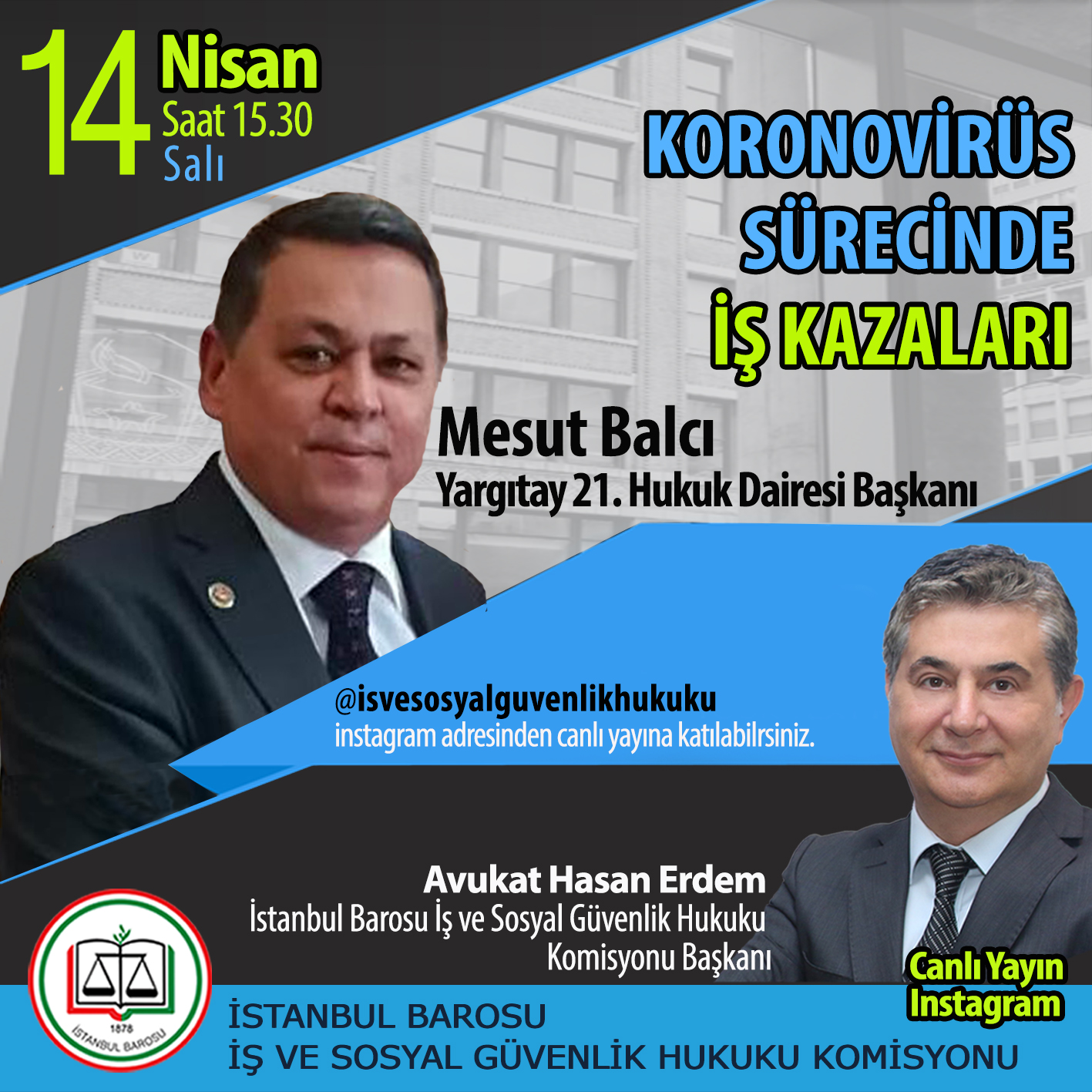 Bu konularda en yetkin kişilerden biri olan Yargıtay 21. Hukuk Dairesi Başkanı Sayın Mesut Balcı ile İstanbul Barosu İş ve Sosyal Güvenlik Hukuku Komisyon Başkanı Avukat Hasan Erdem, 14 Nisan Salı günü canlı yayında bir araya geliyor. @isvesosyalguvenlikhukuku instagram hesabından saat 15.30’da izleyebilirsiniz.